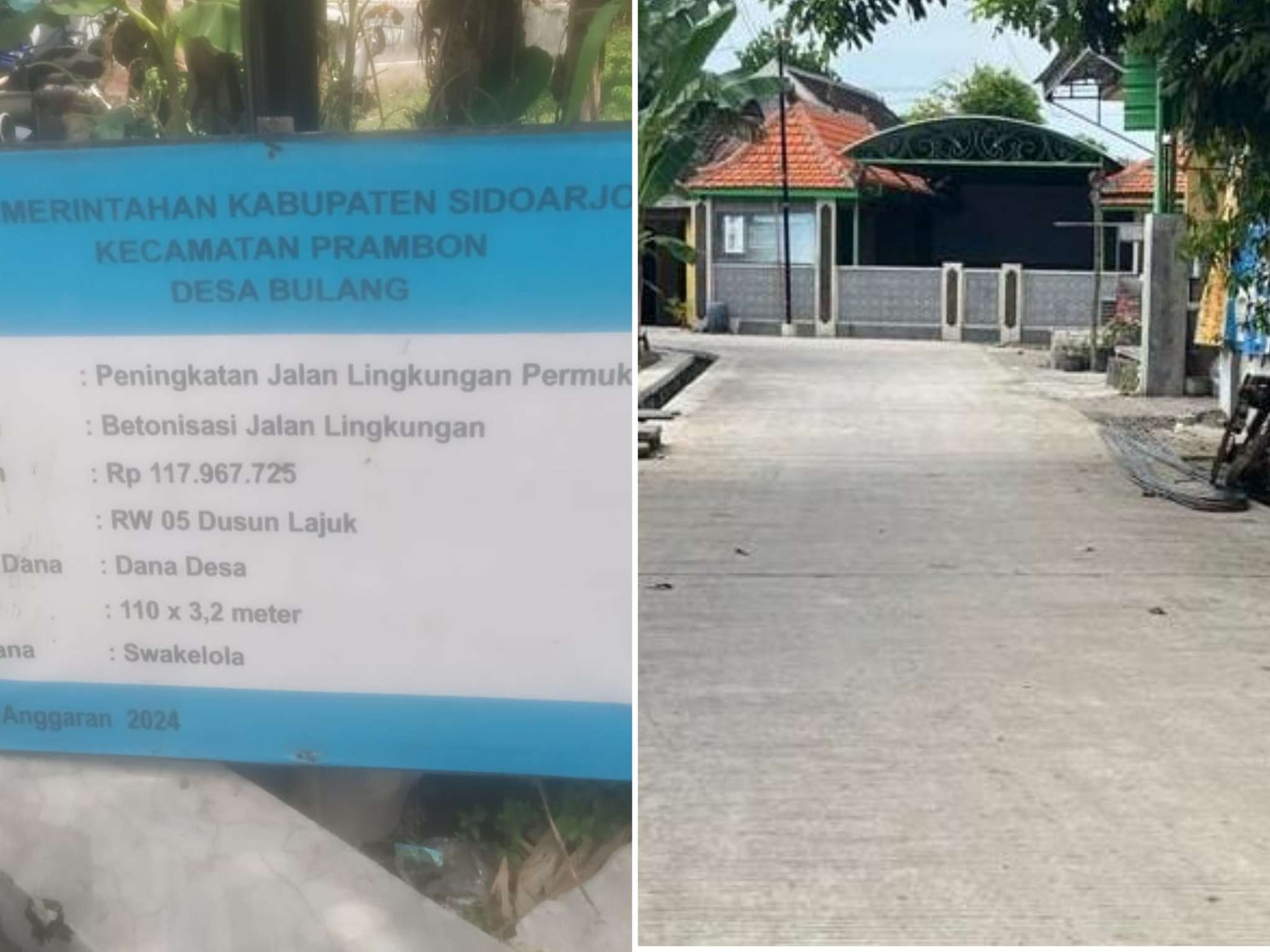 Pembangunan tersebut, berupa rabat betonisasi bersumber dari Dana Desa (DD) tahun 2024, yang telah dialokasikan dalam Anggaran Pendapatan dan Belanja Desa (APBDes) Desa Bulang Tahun 2024.