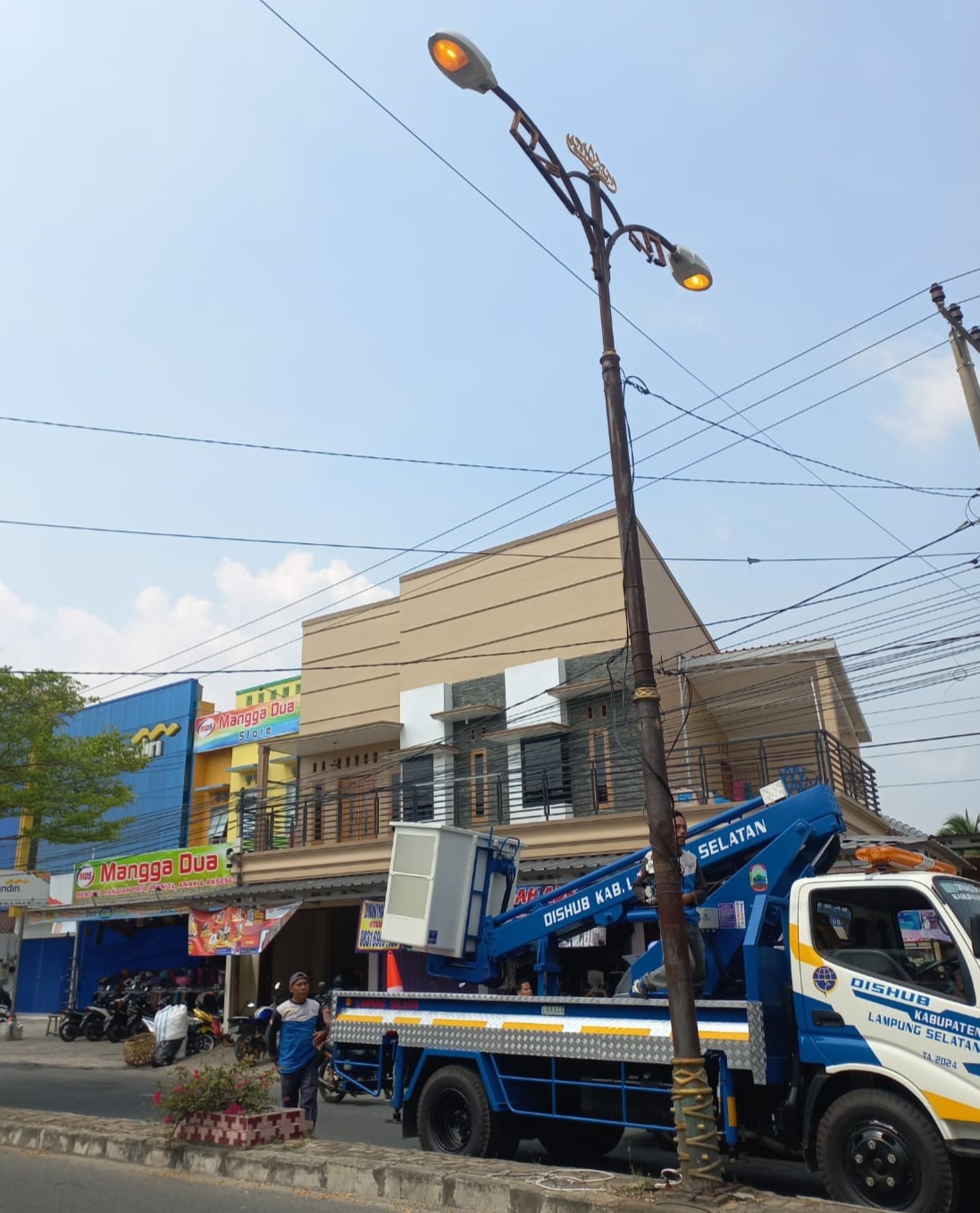 Pada hari Kamis, 22 Oktober 2025, petugas Dishub Lamsel menggunakan mobil sky lift untuk memasang lampu di ruas Jalan Tugu Raden Intan – Simpang Fajar arah Kota Kalianda. Kegiatan ini merupakan bagian dari program rutin Dishub Lamsel dalam memperbaiki dan menambah fasilitas penerangan jalan umum (PJU).
