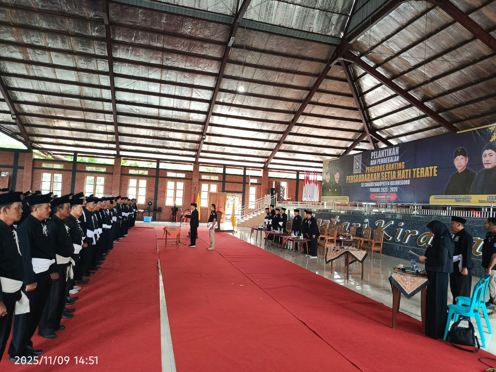 Bojonegoro – Organisasi Pencak Silat Persaudaraan Setia Hati Terate (SH Terate) Cabang Bojonegoro, Pusat Madiun, resmi melantik Pengurus Ranting dan Komisariat SH Terate se Cabang Bojonegoro periode 2025-2028, Minggu (09/11/2025).
