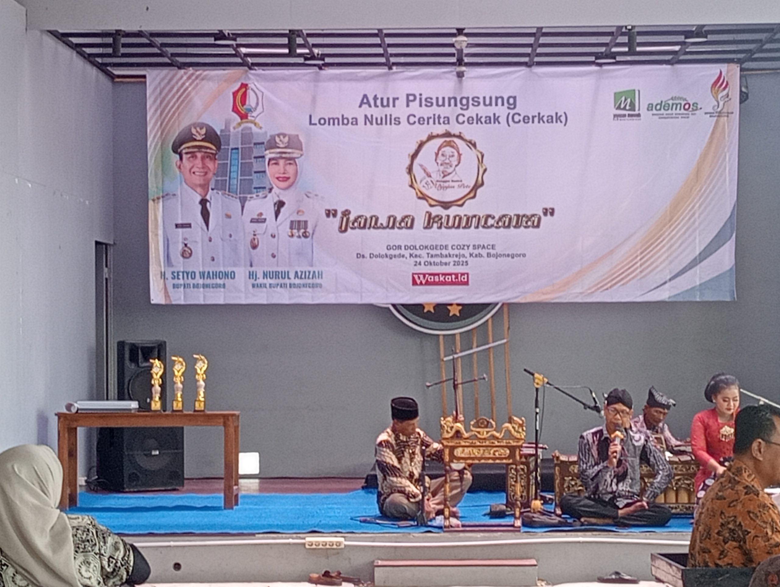 Bojonegoro – Komunitas Sanggar Sastra Djajus Pete akan menggelar acara penyerahan hadiah Lomba Menulis Cerita Cekak (cerkak) bertema “Jawa Kuncara”, pada Jumat, 24 Oktober 2025, bertempat di GOR Dolokgede Cozy Space, Desa Dolokgede, Kecamatan Tambakrejo, Kabupaten Bojonegoro.