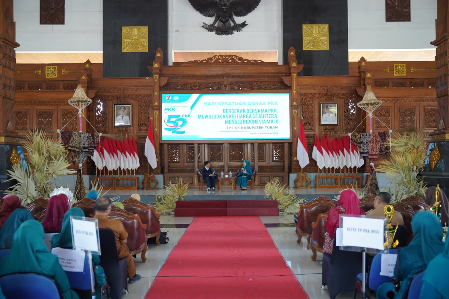 Tuban, transpos.id – Dalam rangka memperingati Hari Kesatuan Gerak (HKG) PKK yang ke-52, Tim Penggerak PKK Kabupaten Tuban menggelar acara bertema “Bergerak Bersama PKK, Mewujudkan Keluarga Sejahtera Menuju Indonesia Maju” di Pendapa Krida Manunggal, Kabupaten Tuban, pada Selasa (5/11).