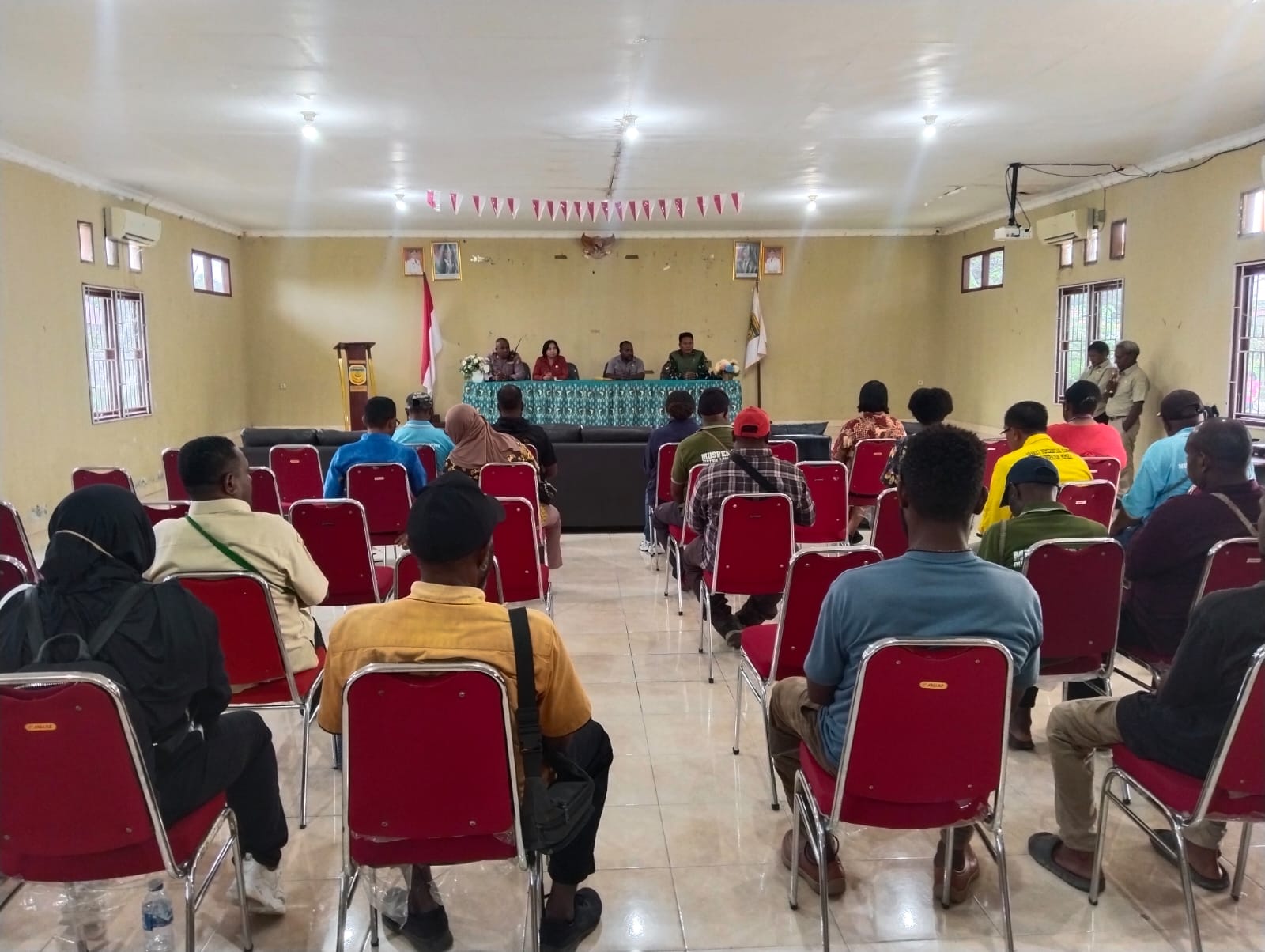 Timika – Bertempat di Kantor Distrik Kuala Kencana, Danramil 1710-03/Kuala Kencana Kapten Inf Agustinus Samba Palangiran menghadiri acara tatap muka bersama pejabat baru dilingkup Distrik Kuala Kenacana sekaligus perkenalan bersama tokoh masyarakat, agama, adat dan tokoh pemuda dalam rangka komunikasi sosial di wilayah Koramil 1710-03/Kuala Kencana, Sabtu (11/04/2026).