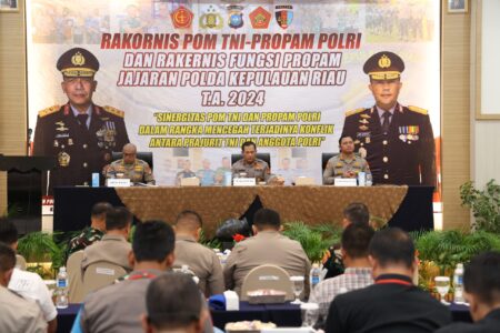 telah dilaksanakan kegiatan Rapat Koordinasi (Rakor) POM TNI – Propam Polri dan Rapat Kerja Teknis (Rakernis) Fungsi Propam jajaran Polda Kepulauan Riau Tahun Anggaran 2024. Kegiatan ini mengusung tema “Sinergitas Pom TNI dan Propam Polri dalam Rangka Mencegah Terjadinya Konflik antara Prajurit TNI dan Anggota Polri”. Selasa (21/5/2024).