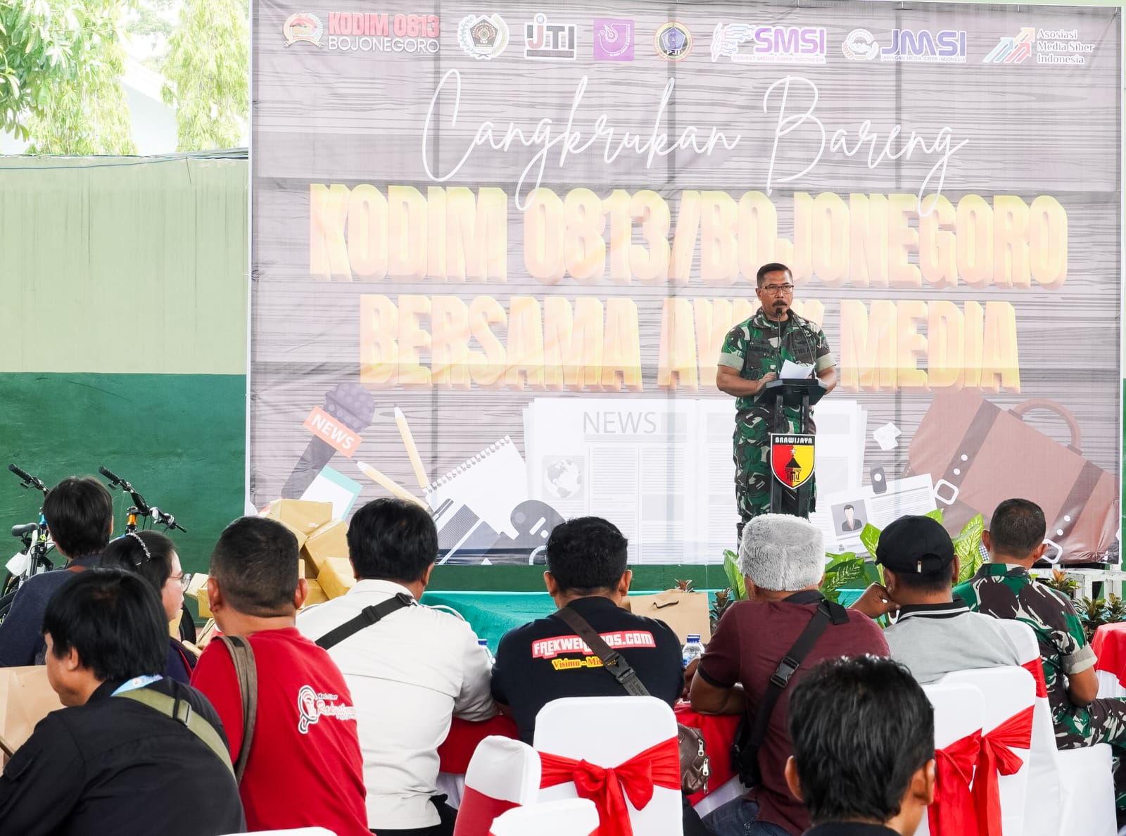 Kepala Staf Kodim (Kasdim) 0813 Bojonegoro Mayor Inf Bambang Riyanto, sekaligus mewakili sambutan dari Komandan Kodim 0813 Bojonegoro, Letkol Czi Arief Rochman Hakim, SE., MM., menyampaikan bahwa jajaran TNI Kodim 0813 Bojonegoro bekerjasama dengan rekan-rekan wartawan dalam memberikan informasi yang edukatif untuk masyarakat.