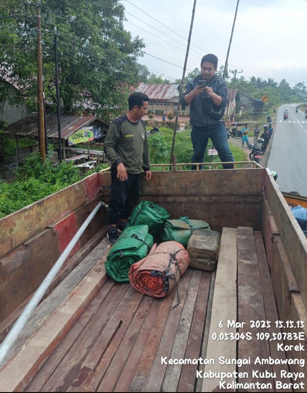 Kubu Raya,Kalbar – Satuan Polisi Hutan (Polhut) dari Dinas Kehutanan Provinsi Kalimantan Barat mengamankan satu unit truk jenis Mitsubishi Canter dengan nomor polisi KB 8468 GL yang mengangkut kayu ilegal di Desa Korek, Kecamatan Sungai Ambawang, Kabupaten Kubu Raya, pada Rabu (6/3/2025). Keberadaan truk tersebut terungkap melalui foto koordinat yang beredar di kalangan aparat dan masyarakat.