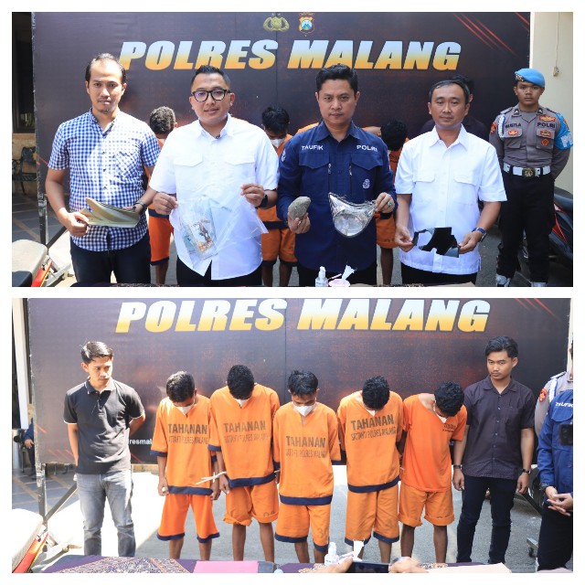 Berdasarkan hasil penyidikan dan gelar perkara, kelima pelaku kini telah ditetapkan sebagai tersangka dan ditahan di rutan Polres Malang. Mereka dikenakan Pasal 170 KUHP tentang kekerasan terhadap orang atau barang di muka umum, dengan ancaman hukuman paling lama lima tahun penjara.