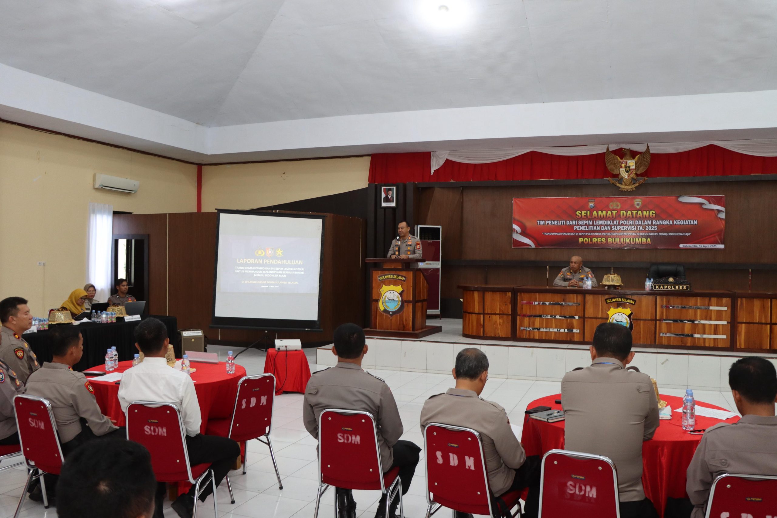 BULUKUMBA — Polres Bulukumba Polda Sulsel menerima kunjungan Tim Penelitian Sekolah Staf dan Pimpinan (Sespim) Lembaga Pendidikan dan Latihan (Lemdiklat) Polri.