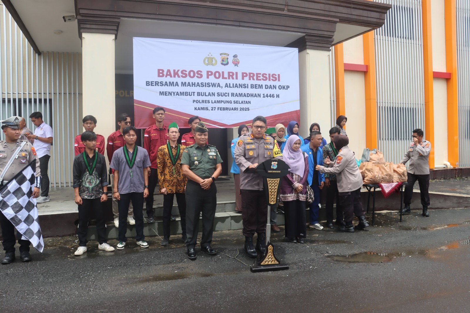 Polres Lampung Selatan Bersama Mahasiswa dan OKP Gelar Baksos Polri Presisi Sambut Ramadan