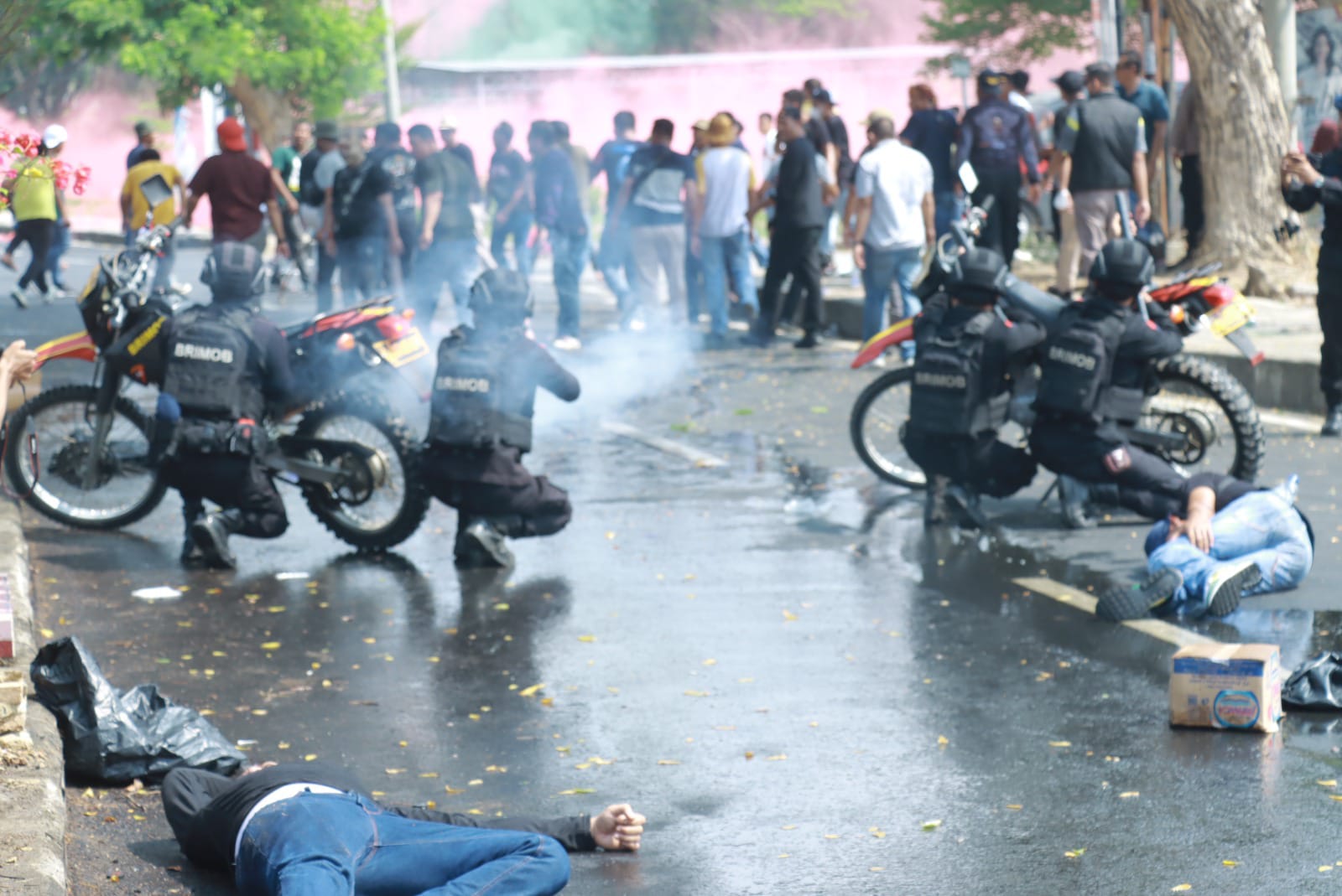 Adegan yang di tontonkan tadi, menurut Kapolres, Pengamanan masa kali ini menjukan penanganan dari tahapan dari hijau (masa damai), Kuning (masa tampak tidak mematuhi aturan) dan merah (masa anarkis) dengan melibatkan personil dari Brimobda Polda Lampung.