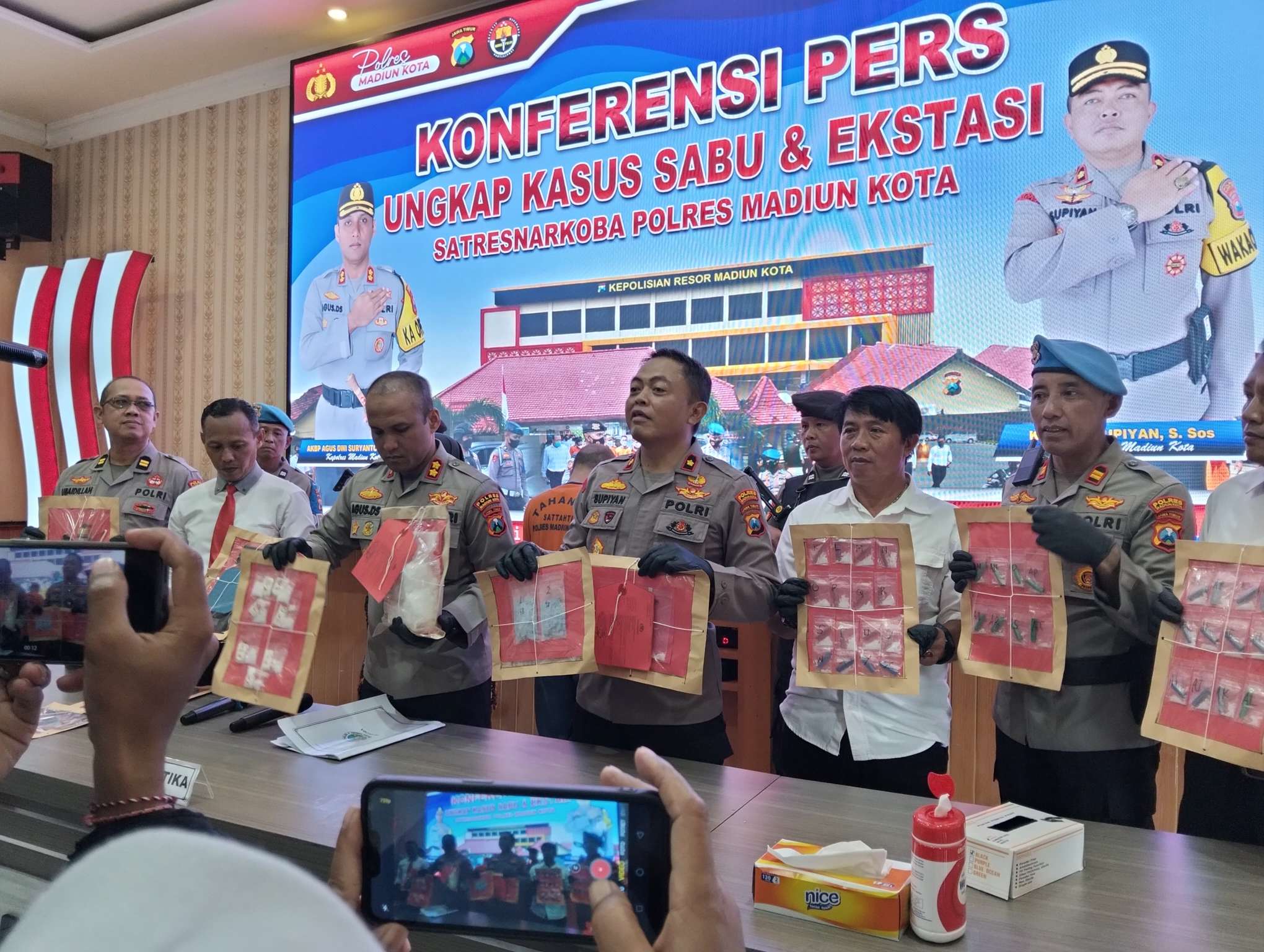 “Petugas menemukan alat bantu pengemasan dan catatan transaksi”,jelas Kapolres Madiun Kota.