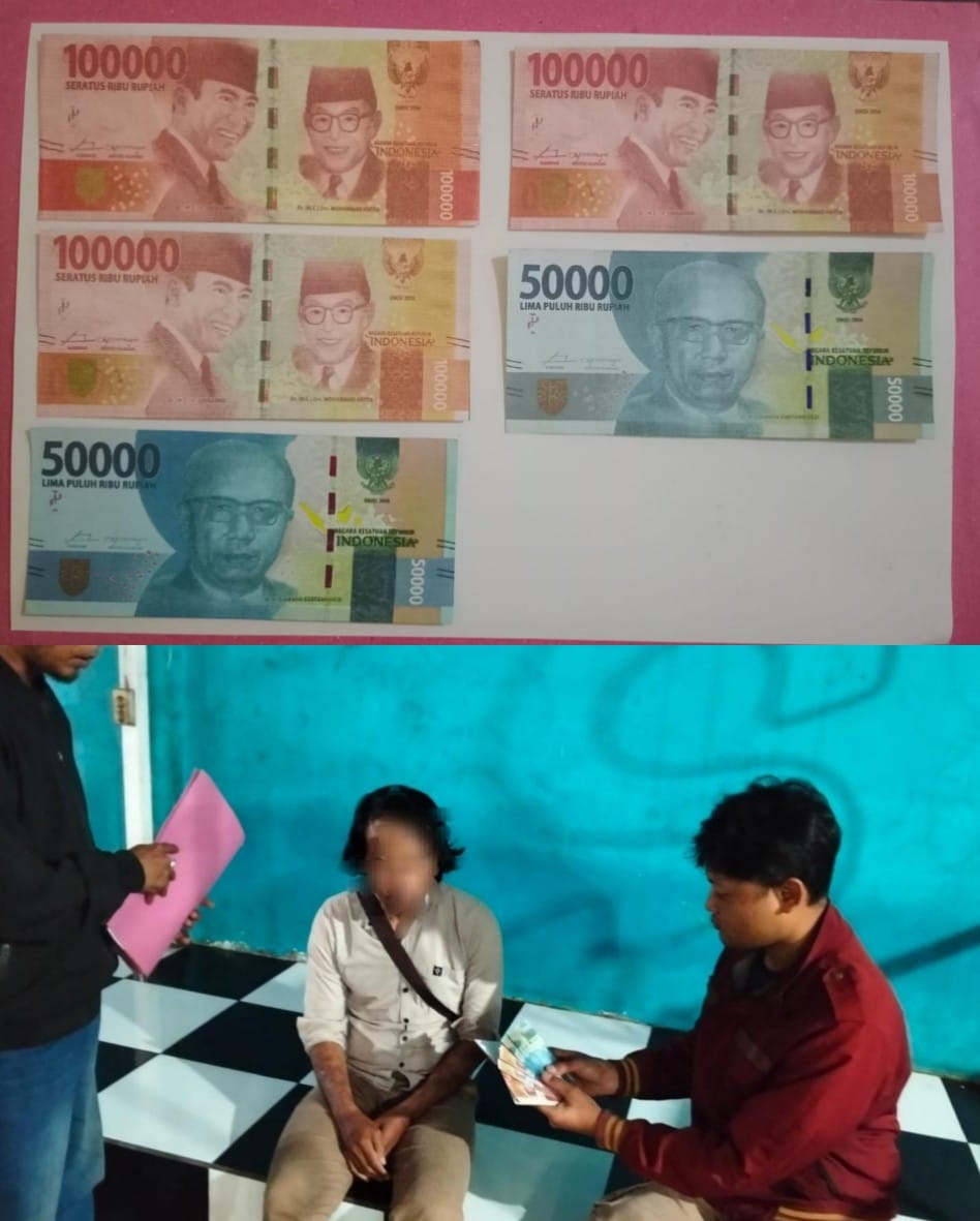 Dari hasil pemeriksaan awal, petugas menemukan barang bukti berupa 3 (tiga) lembar uang palsu pecahan Rp100.000 dan 2 (dua) lembar uang palsu pecahan Rp50.000.
