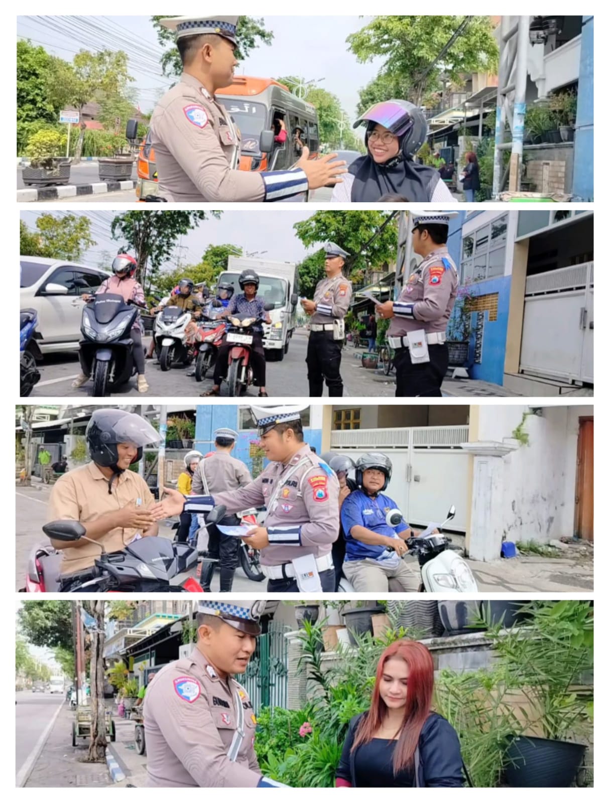 Setelah sosialisasi, personel Satlantas melanjutkan kegiatan dengan membagikan brosur kepada para pengendara. Brosur tersebut berisi informasi tentang aturan berlalu lintas, pentingnya keselamatan dalam berkendara, serta sanksi yang dapat diberikan kepada pelanggar lalu lintas. Dengan adanya brosur ini, diharapkan masyarakat semakin memahami dan menaati aturan yang berlaku demi terciptanya ketertiban dan keselamatan di jalan raya.