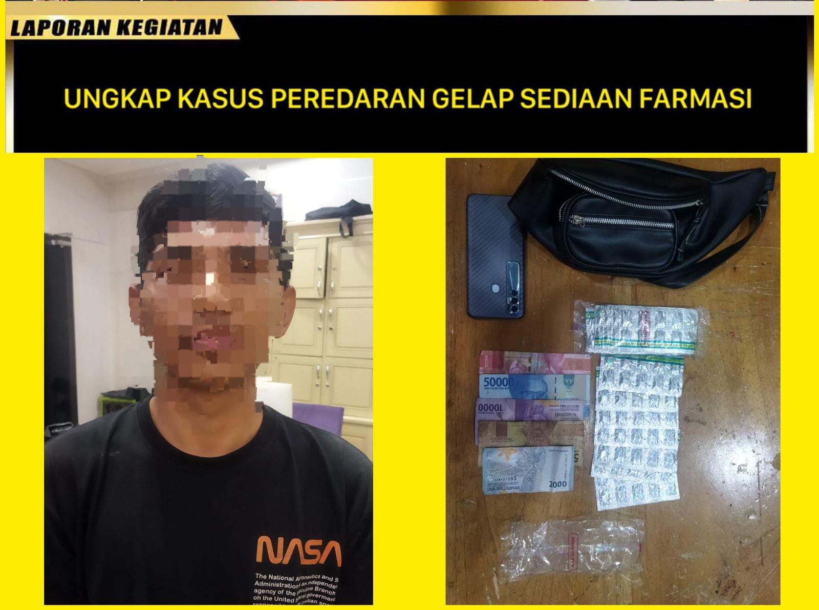SUKABUMI | transpos.id- Dalam sebuah laporan yang dirilis oleh Satresnarkoba Polres Sukabumi, disebutkan bahwa pada Selasa, 14 Mei 2024, sekira pukul 20.00 WIB, telah terjadi pengungkapan kasus penyalahgunaan obat di Kp. Langkob, Ds. Kertaangsana, Kec. Nyalindung, Kab. Sukabumi. Pelaku, yang diidentifikasi sebagai Asep Pirmansyah alias Onde bin Lili Jamaludin, seorang buruh harian lepas, ditangkap oleh anggota Polsek Nyalindung dengan barang bukti berupa 170 butir obat daftar G yang diduga jenis Tramadol, uang tunai sebesar Rp. 167.000,-, serta satu unit handphone.