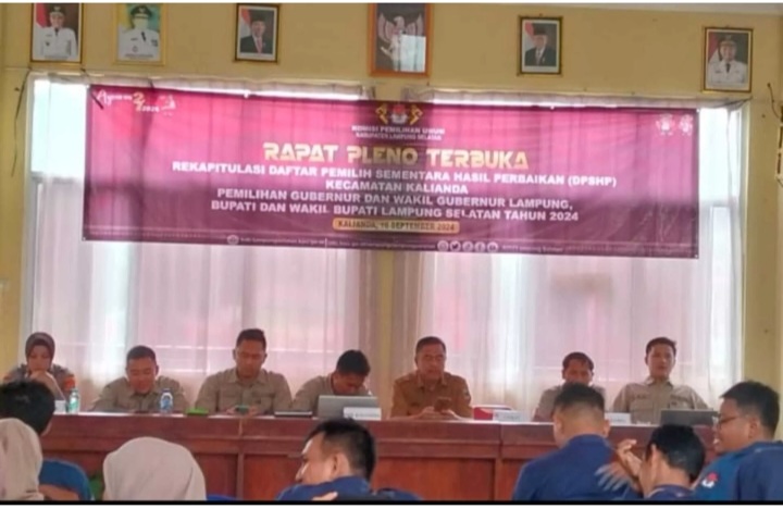 PPK Kalianda gelar rapat pleno terbuka rekapitulasi daftar pemilih sementara hasil perbaikan (DPSHP) pemilihan gubernur dan wakil gubernur lampung, pemilihan bupati dan wakil bupati lampung selatan untuk kecamatan kalianda kabupaten lampung selatan, Selasa (10/09/2024).