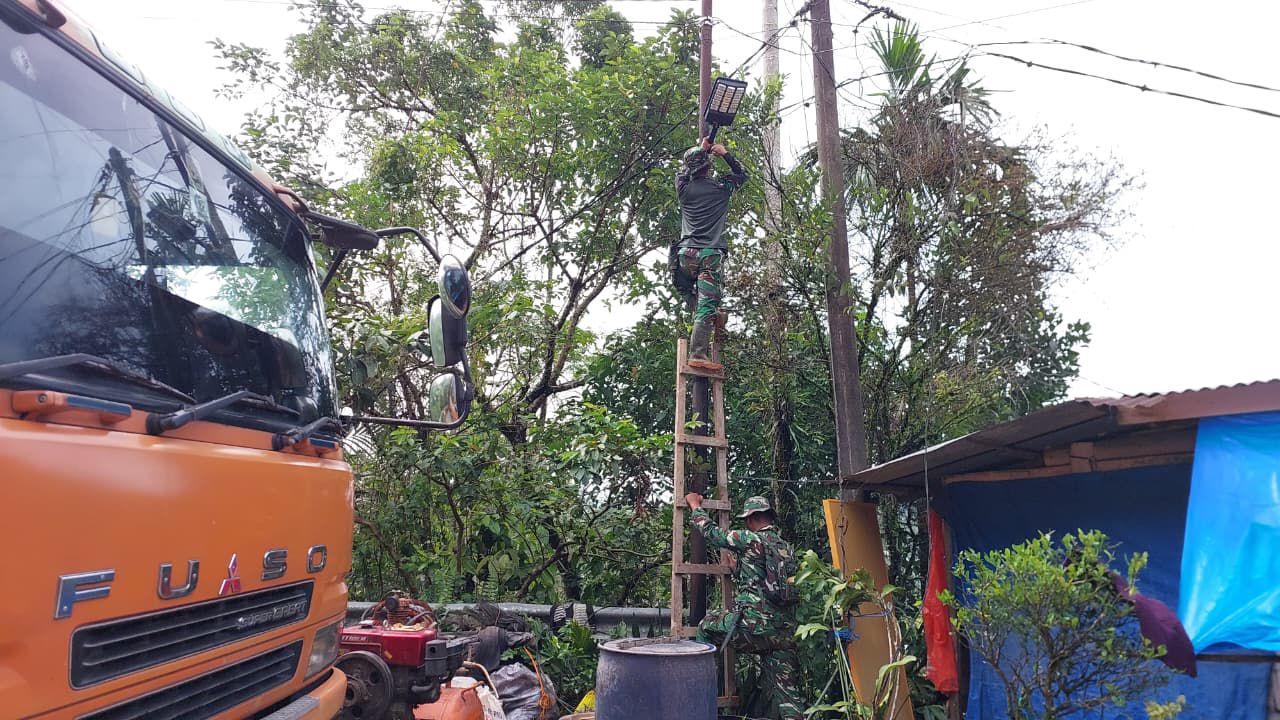 Guna memulihkan fasilitas penerangan bagi masyarakat, kegiatan pemasangan meliputi lampu solar light di sepanjang jalan desa serta bantuan pemasangan lampu berbasis solar system di rumah-rumah warga. Upaya ini menjadi bagian dari langkah nyata TNI dalam mendukung keamanan, kenyamanan, dan kelancaran aktivitas masyarakat, khususnya pada malam hari, pascabencana yang melanda wilayah tersebut.