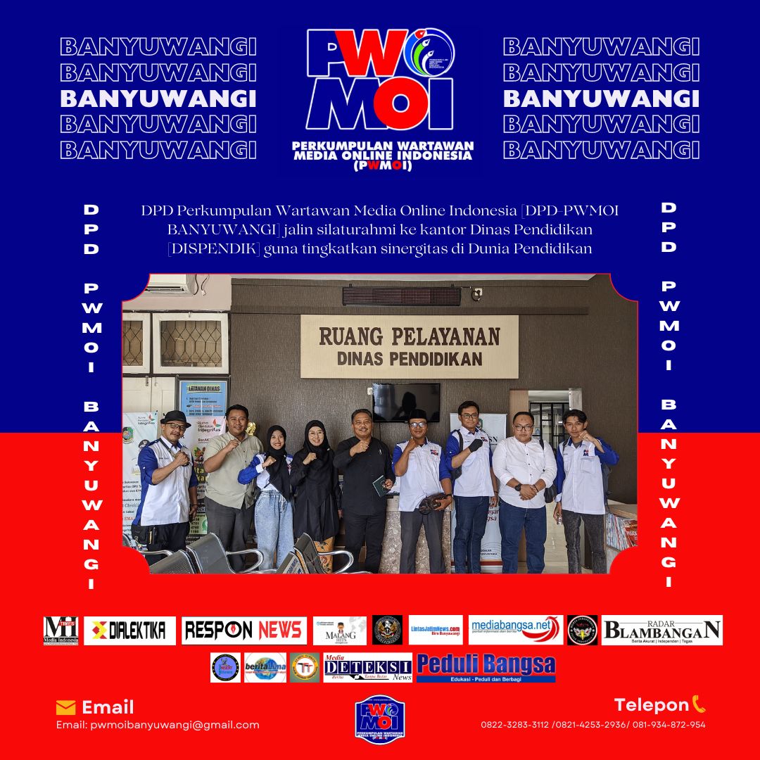 Banyuwangi, transpos.id – Dalam upaya memperkuat sinergi dan meningkatkan kualitas pendidikan, DPD PWMOI Banyuwangi melakukan audiensi silaturahmi dengan Dinas Pendidikan Kabupaten Banyuwangi. Pertemuan yang berlangsung di Jalan Agus Salim Taman Baru Kecamatan Kota Kabupaten Banyuwangi. Kamis 3 September 2024.