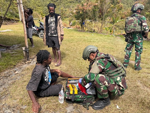Puncak Jaya – Merajut kasih melalui pelayanan kesehatan kepada masyarakat binaan di kampung Ginik kali ini berbeda dengan sebelumnya, untuk memastikan kesehatan masyarakat di kampung Ginik personel Satgas Yonif 715/Mtl Pos Merah Putih turun gunung utk memberikan pelayanan maksimal dan mendengar keluh kesah yang ada dimasyarakat Distrik Mulia Puncak Jaya, Rabu (18/06/2025).