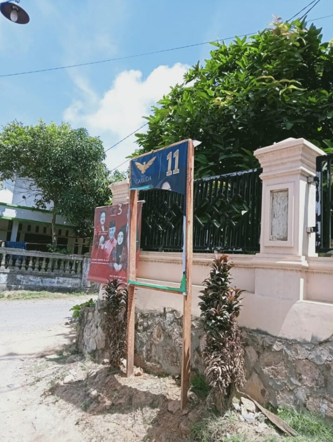 Lampung Selatan — Tercatat satu buah baliho calon legislatif (caleg) DPRD Lampung Selatan dari Partai Garuda Siti Aisyah no urut 4 dirusak oleh orang tidak bertanggung jawab. Perusakan baliho ini terjadi sejak satu hari yang lalu yang lokasinya dominan di Desa sidomekar Kecamatan katibung. Perusakan alat peraga kampanye (APK) pun menunjukkan kerdilnya demokrasi di dapil 7 lampung Selatan.