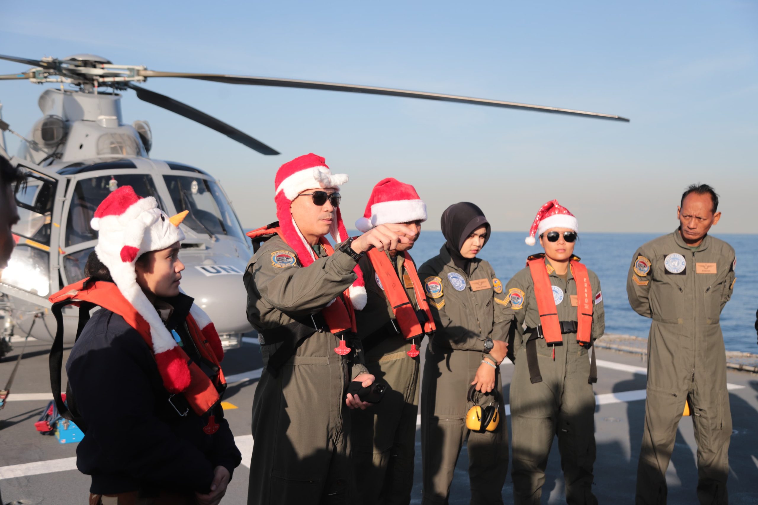 Sementara itu, Heli AS 565 MBe Panther HS-1306 dengan callsign “Garuda” yang diawaki Capt Pilot Kapten Laut (P) Ardy A. Paath dan Copilot Kapten Laut (P/W) Andi Q. Wetuffahati turut berperan dalam misi Intelligence, Surveillance and Reconnaissance (ISR) serta dokumentasi (Photex).