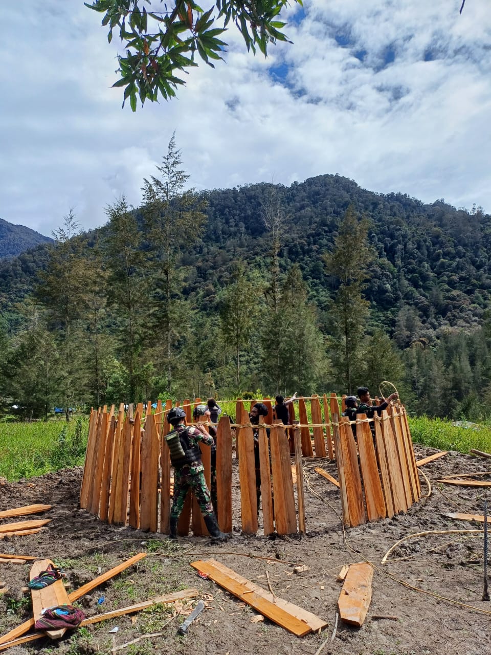 Satgas TNI 300 Siliwangi Buat Honai Untuk Warga di Mayuberi Papua