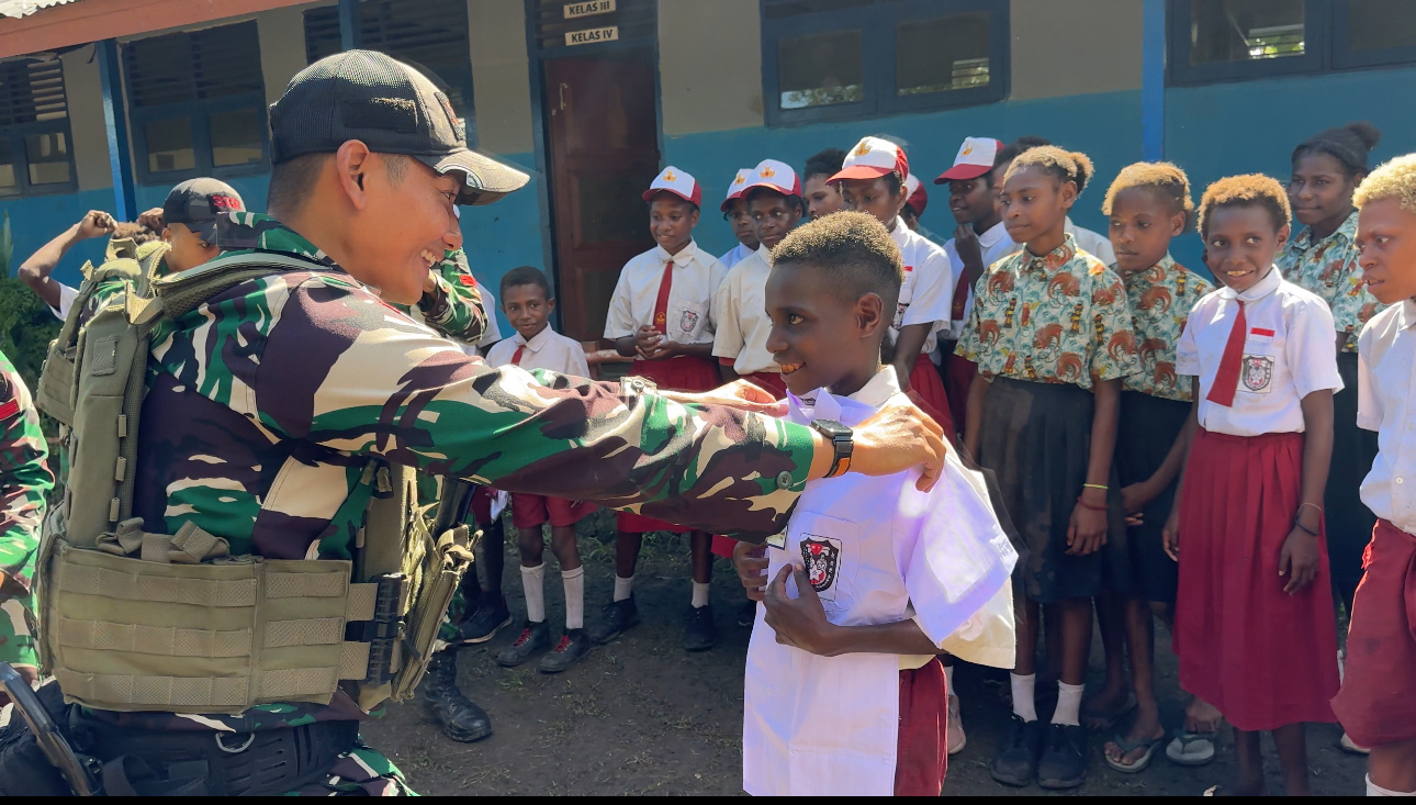 Merauke – Menyambut dimulainya tahun ajaran baru 2025/2026, Satgas Pamtas RI-PNG Yonif 312/Kala Hitam melalui Pos Rawabiru kembali menunjukkan kepedulian dan kontribusinya dalam dunia pendidikan. Dalam aksi kemanusiaan yang penuh makna, Satgas membagikan seragam sekolah kepada para siswa dan siswi SD Inpres Rawabiru, Distrik Sota, Kabupaten Merauke, Sabtu (19/7/2025).
