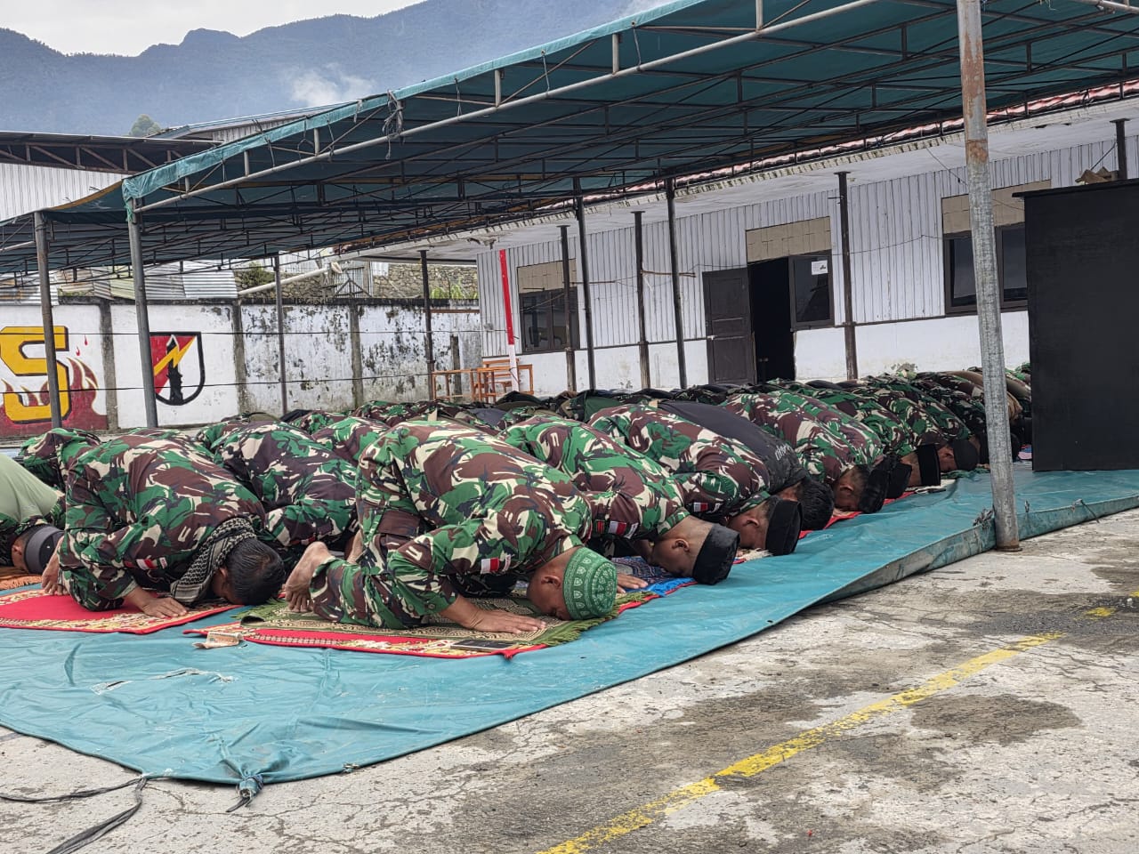 Puncak Jaya – Satgas Yonif 715/Mtl rayakan Idul Fitri 1446 H tahun 2025 di daerah penugasan dengan khusyuk dan rasa syukur walau jauh dari keluarga dan orang yang di cintai, tidak menyurutkan sedikitpun semangat para prajurit saat melaksanakan tugas dan tetap bersama-sama merayakan hari kemenangan di Pos-Pos Satgas Yonif 715/Mtl Puncak Jaya Papua, Senin (31/03/2025).