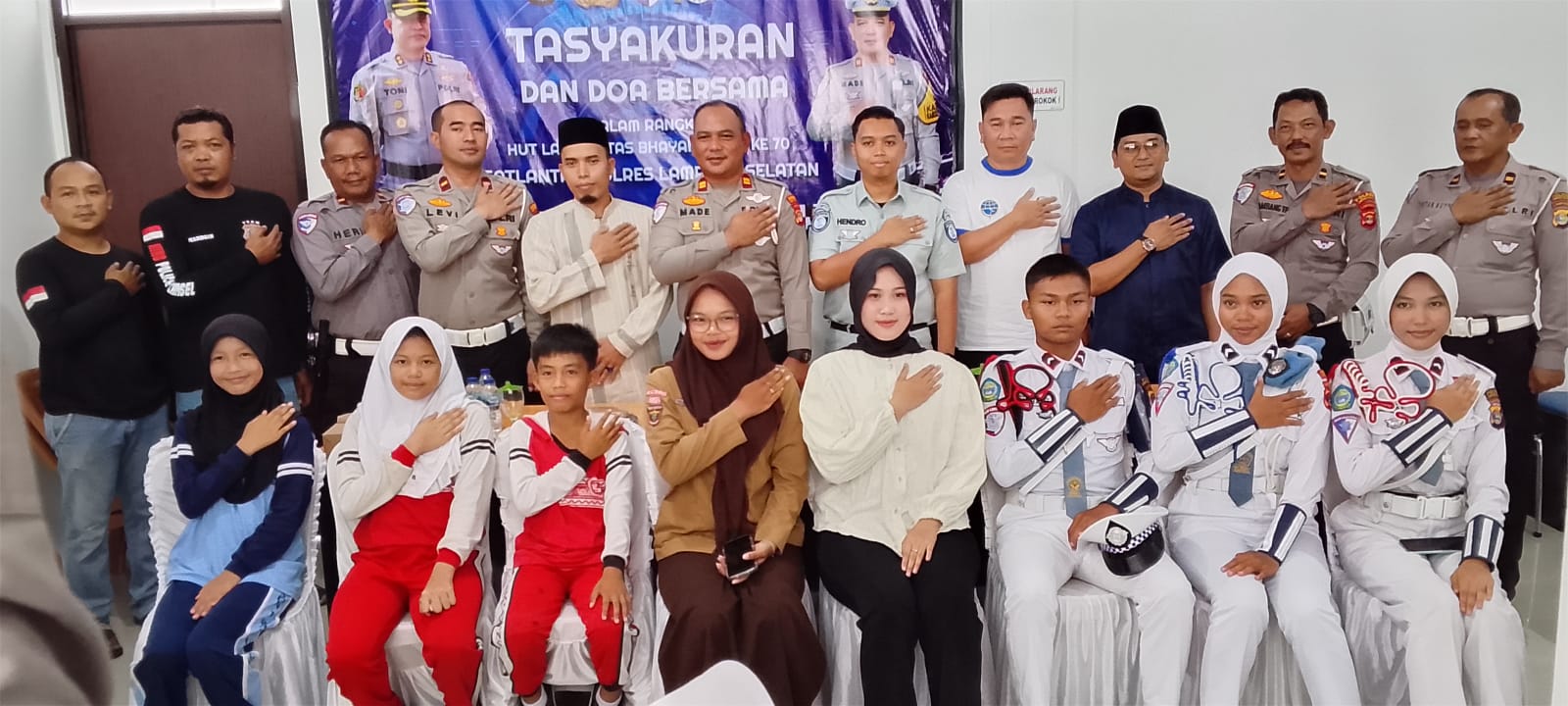 Lampung Selatan, Transpos.id. – Dalam rangka memperingati Hari Ulang Tahun (HUT) Lalu Lintas Bhayangkara ke-70, Satuan Lalu Lintas (Satlantas) Polres Lampung Selatan menggelar acara Tasyakuran dan Doa Bersama, yang berlangsung khidmat di Aula Satlantas Polres Lampung Selatan, pada Jumat (12/9/2025).