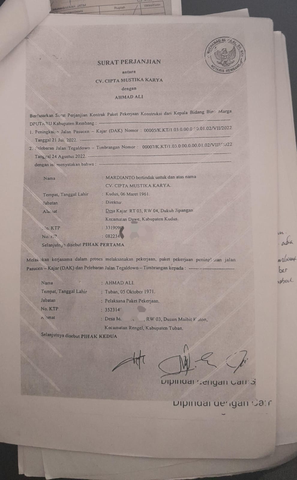 Pasalnya, Pasidi (Guru) dan Muslikin (Satpol PP) serta Ahmad Ali (Kades) ini mendapatkan tander proyek sehingga oknum guru ini bersama dua temenya meminjam ke investor dengan janji bagi keuntungan.