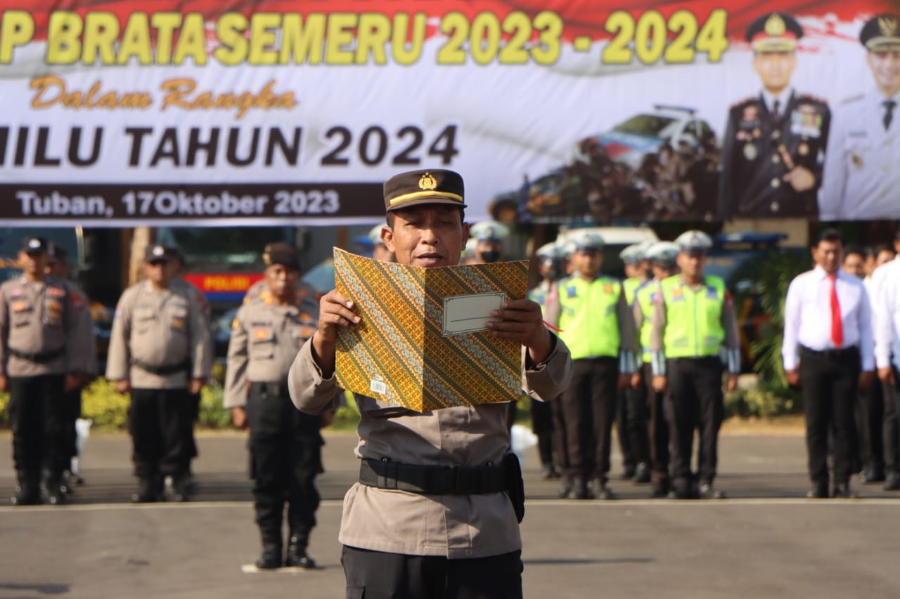 Kapolres Tuban mengatakan apel gelar pasukan dalam operasi Mantap Brata 2023-2024 tersebut dilaksanakan secara serentak di seluruh Indonesia sebagai bentuk pengecekan akhir kesiapan baik dari segi kelengkapan maupun kesehatan personel yang terlibat dan juga sarana prasarana yang akan digunakan selama operasi,