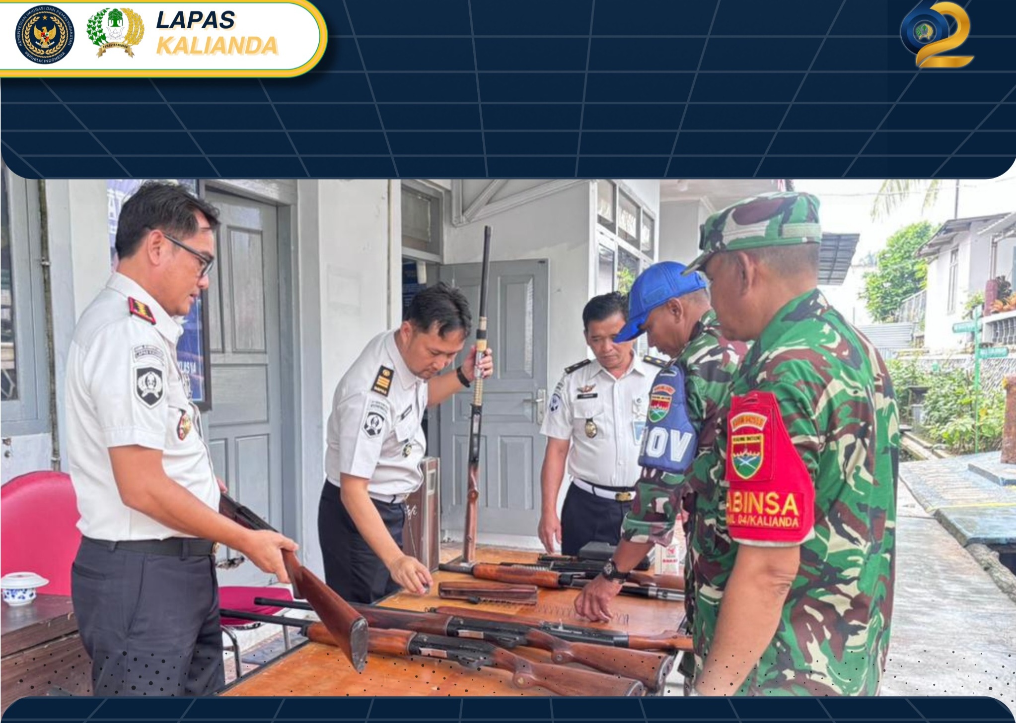 Kalianda, Transpos.id. – Lembaga Pemasyarakatan Kelas IIA Kalianda bekerjasama dengan Kodim 0421 Lampung Selatan melaksanakan kegiatan perawatan dan pemeliharaan senjata api inventaris yang dipimpin langsung oleh Kepala Lapas Kalianda sebagai bagian dari upaya menjaga kesiapsiagaan pengamanan di lingkungan Lapas (28/4).