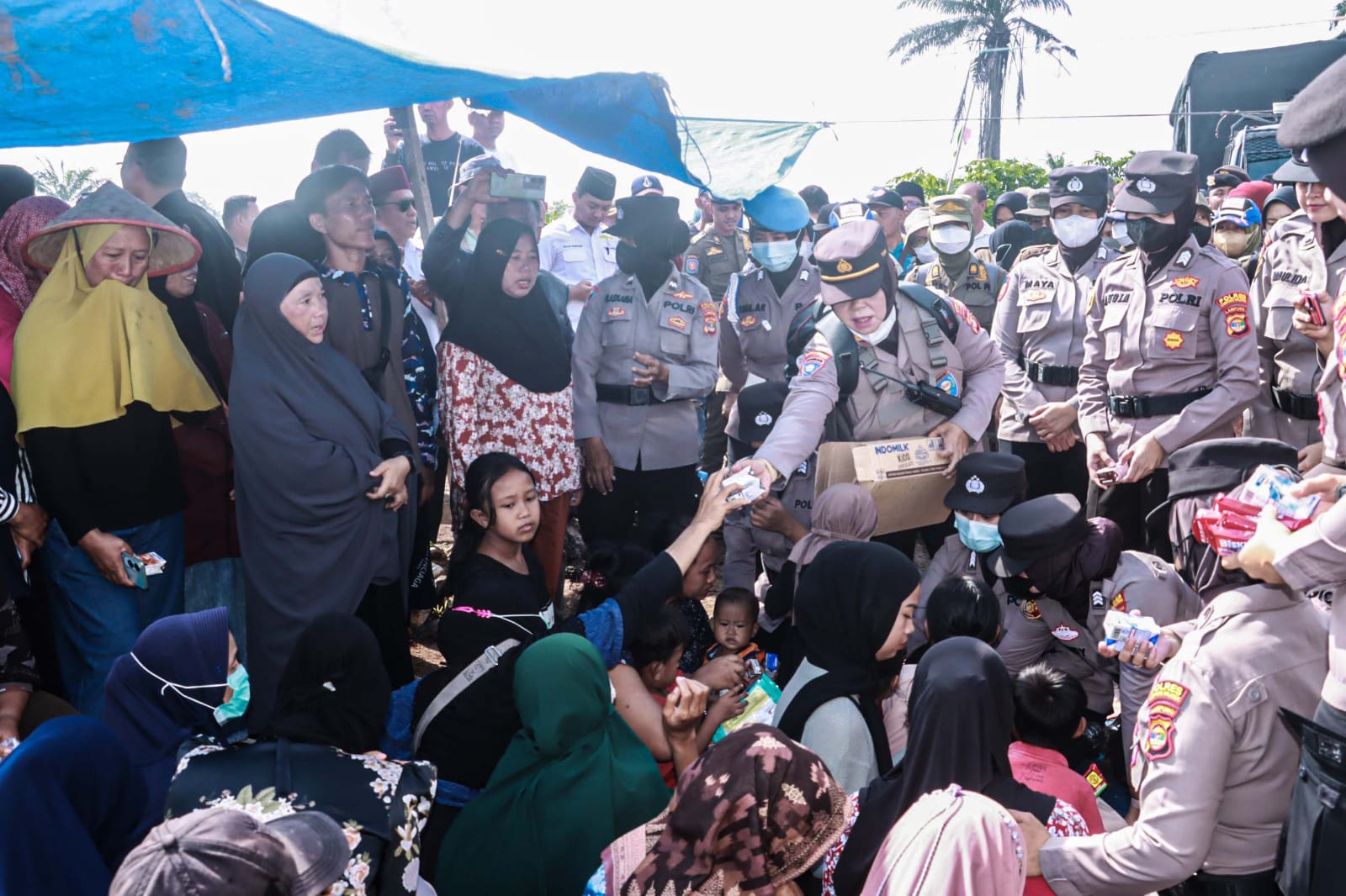 Di tengah situasi tersebut, para Polwan mengambil langkah untuk menenangkan warga, khususnya anak-anak. Mereka membagikan snack dan susu sambil memberikan pelukan kepada anak-anak yang kebingungan.