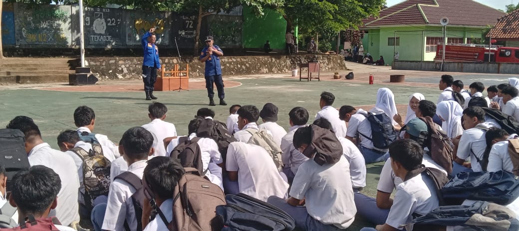 Dinas Pemadam Kebakaran dan Keselamatan (Damkarmat) Lamsel melakukan sosialisasi bahaya kebakaran, cara mencegah dan mengatasi kebakaran, kepada siswa SMK N 2 Kalianda, pada selasa 8 April 2025.
