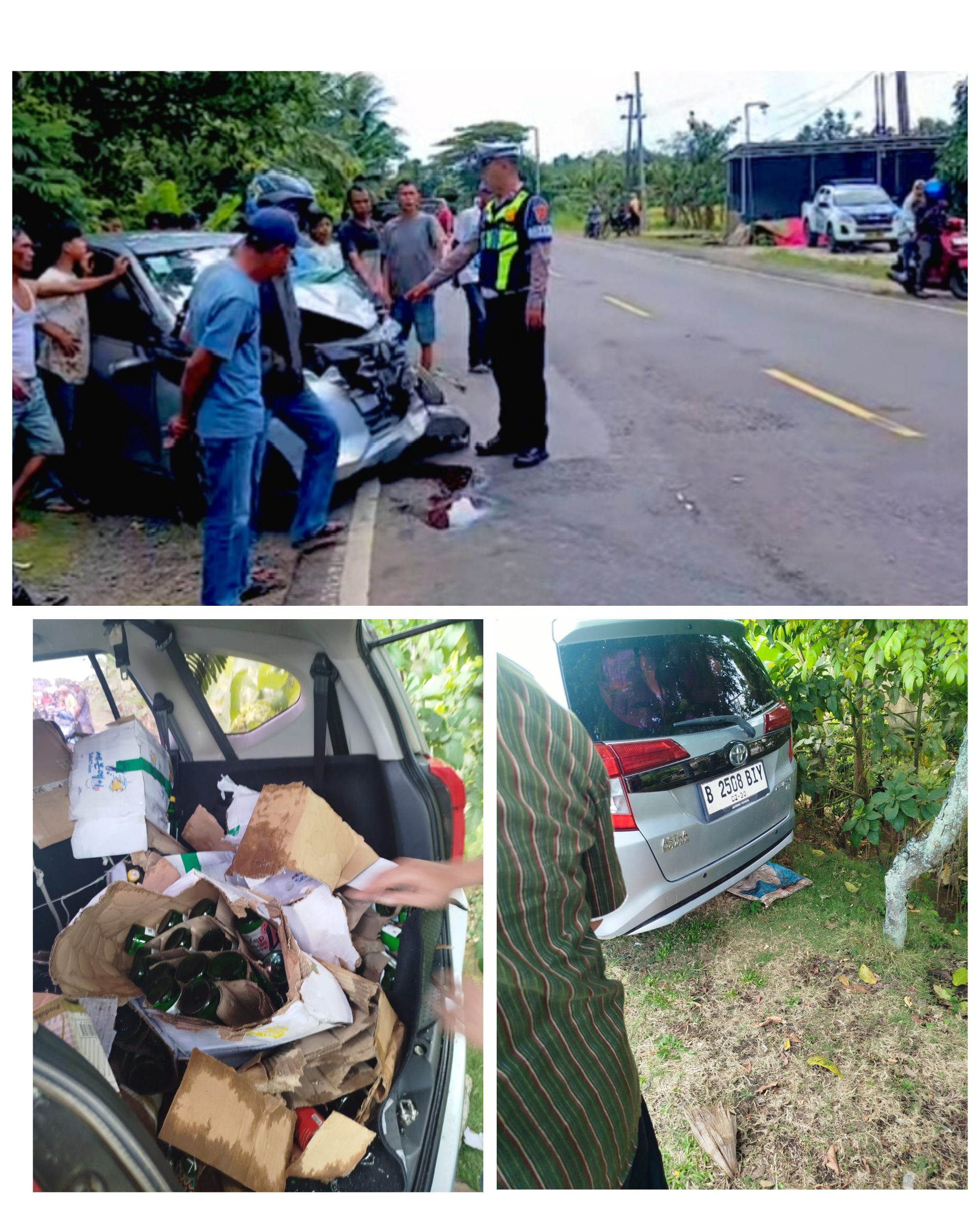 Lampung Selatan Kalianda, Transpos.id. – – Telah terjadi Kecelakaan lalu lintas terjadi di ruas Jalan Lintas Sumatera (Jalinsum), sekitar area lokasi rumah makan alam mutiara desa Tajimalela kecamatan Kalianda, Lampung Selatan pada Senin (6/4/2026). Insiden yang melibatkan dua kendaraan minibus ini tidak hanya menyebabkan kerusakan parah, tetapi juga mengungkap dugaan pengangkutan minuman keras (miras) ilegal.