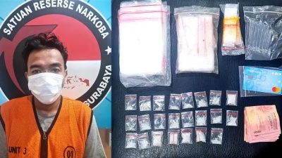 Surabaya – Satuan Reserse Narkoba (Satresnarkoba) Polrestabes Surabaya berhasil menangkap seorang pria berinisial HTH bin H (36), yang diduga menjadi kurir narkotika jenis sabu-sabu. Penangkapan dilakukan pada Sabtu malam, 22 Maret…
