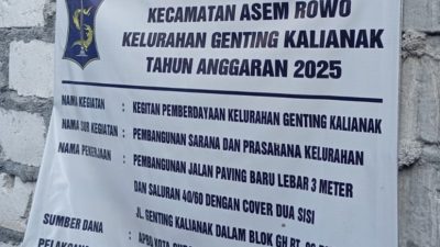 Surabaya – Proyek pemasangan saluran air dan pavingisasi di dua titik Jalan Genting Tambak Dalam Blok GH dan Genting Tambak Dalam Blok KL, Kelurahan Genting Kalianak, Kecamatan Asemrowo, Kota Surabaya….