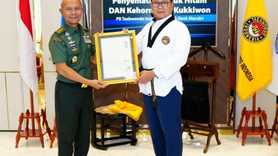 Jakarta, transpos.id – Ketua Umum Pengurus Besar Taekwondo Indonesia (Ketum PBTI) Letjen TNI Richard Tampubolon menyematkan Sabuk Hitam Dan Kehormatan Kukkiwon, kepada Direktur Utama PT Bank Mandiri (Persero) Tbk, Darmawan…