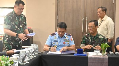 Makassar – Komandan Lanud Sultan Hasanuddin, Marsma TNI Arifaini Nur Dwiyanto, M.Han., dan General Manager PT. Angkasa Pura Indonesia Bandara Sultan Hasanuddin, Minggus E.T. Gandeguai melakukan penandatanganan berita acara Verifikasi…