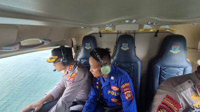Surabaya – Kapolda Jawa Timur Irjen Pol Nanang Avianto bersama Pejabat Utama (PJU) Polda Jatim turun langsung melakukan pemantauan udara ke lokasi pencarian korban tenggelamnya Kapal Motor (KM) Tunu Pratama…