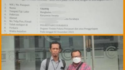 Surabaya – Berdasarkan surat tanda terima laporan/ pengaduan, Nomer: STTLPM/1312/XI/2024/SPKT/Polrestabes Surabaya, tanggal 26 bulan November, tahun 2024, pukul 12.50 wib.Taufiq secara resmi melaporkan terkait dugaan kasus tindak pidana Penggelapan dan…