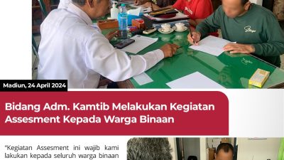 Madiun, transpos.id– Lembaga Pemasyarakatan Kelas I Madiun Kanwil Kemenkumham Jatim Gelar Assesment Register F Nihil kepada Warga Binaan Pemasyarakatan Lapas Kelas I Madiun. Kegiatan ini dilaksanakan oleh bidang Administrasi keamanan…
