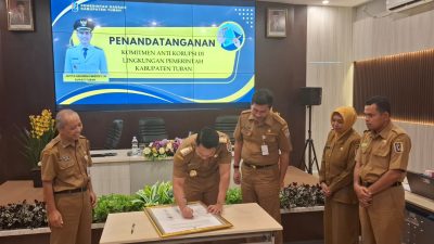 Tuban,transpos.id – Bupati Tuban, Aditya Halindra Faridzky, SE., melakukan Penandatanganan Komitmen Bersama Untuk Mewujudkan Pemerintahan yang Baik (good governance), Bebas dari KKN dan Antikorupsi, Selasa (23/04/2024). Bertempat di ruang rapat…