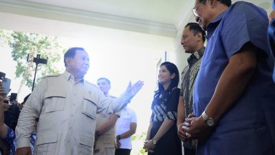 Pacitan, Jawa Timur;- Ketua Umum Partai Demokrat Agus Harimurti Yudhoyono (AHY) mendampingi Presiden ke-6 Republik Indonesia Susilo Bambang Yudhoyono (SBY), saat menerima kunjungan silaturahmi Calon Presiden nomor urut 2 Prabowo…