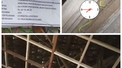 Pasuruan, transpos.id – Pengerjaan penambahan nilai gedung bangunan kantor baru bidang 1 yang dikerjakan CV Marga Ruli Konstruksi dan CV Marga Galaxi Kasalindo di Kantor Balai Besar Taman Nasional Bromo…