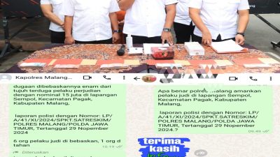 Malang – Dugaan pelepasan yang dilakukan Polres Malang terhadap 6 pelaku kasus judi dari 7 orang yang diamankan di lapangan Sempol, Kecamatan Pagak, sangat menarik untuk diulas. Sebab, menyikapi perkara yang…