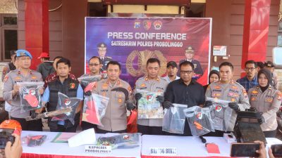PROBOLINGGO,- Satreskrim Polres Probolinggo Polda Jatim berhasil mengungkap 8 kasus 3C (Curas, Curat, Curanmor), dalam kurun waktu Juli 2025. Dari pengungkapan ini, petugas mengamankan Sembilan orang tersangka. Diantaranya, AH (39),…
