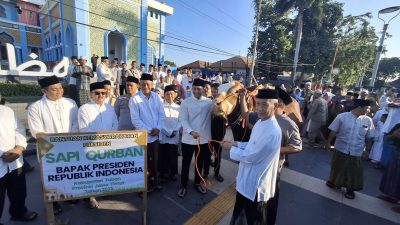 TUBAN – Bupati Tuban, Aditya Halindra Faridzky, SE., didampingi Wabup, Drs. Joko Sarwono dan Forkopimda Tuban menyerahkan bantuan hewan kurban dari Presiden RI, Prabowo Subianto, Jumat (06/06/2025). Bertempat di Masjid…