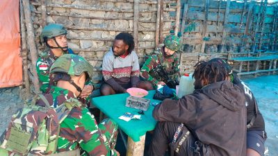 Puncak Jaya – Personel Satgas Pamtas Kewilayahan Yonif 715/Motuliato Pos Tonolok dalam rangka menjalin hubungan baik dengan masyarakat di daerah penugasan, personel pos Tinolok melaksanakan kegiatan komunikasi sosial (Komsos) secara humanis…