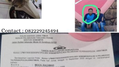 SURABAYA – Seorang pengendara gojek online di Surabaya harus tak bekerja setelah sepeda motornya dipinjam oleh temannya dan dibawa kabur, Korban bernama Moch, Rahmad (36) warga Dusun Banduarjo, Desa Sumberpetung,…