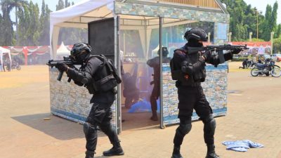 Tuban,transpos.id – Polres Tuban menggelar Simulasi Sistem Pengamanan Kota (Sispamkota) dalam rangka kesiapan Pengamanan Pemilu serentak tahun 2024 yang dilaksanakan di Alun-alun Kota Tuban, Selasa (10/10/23).