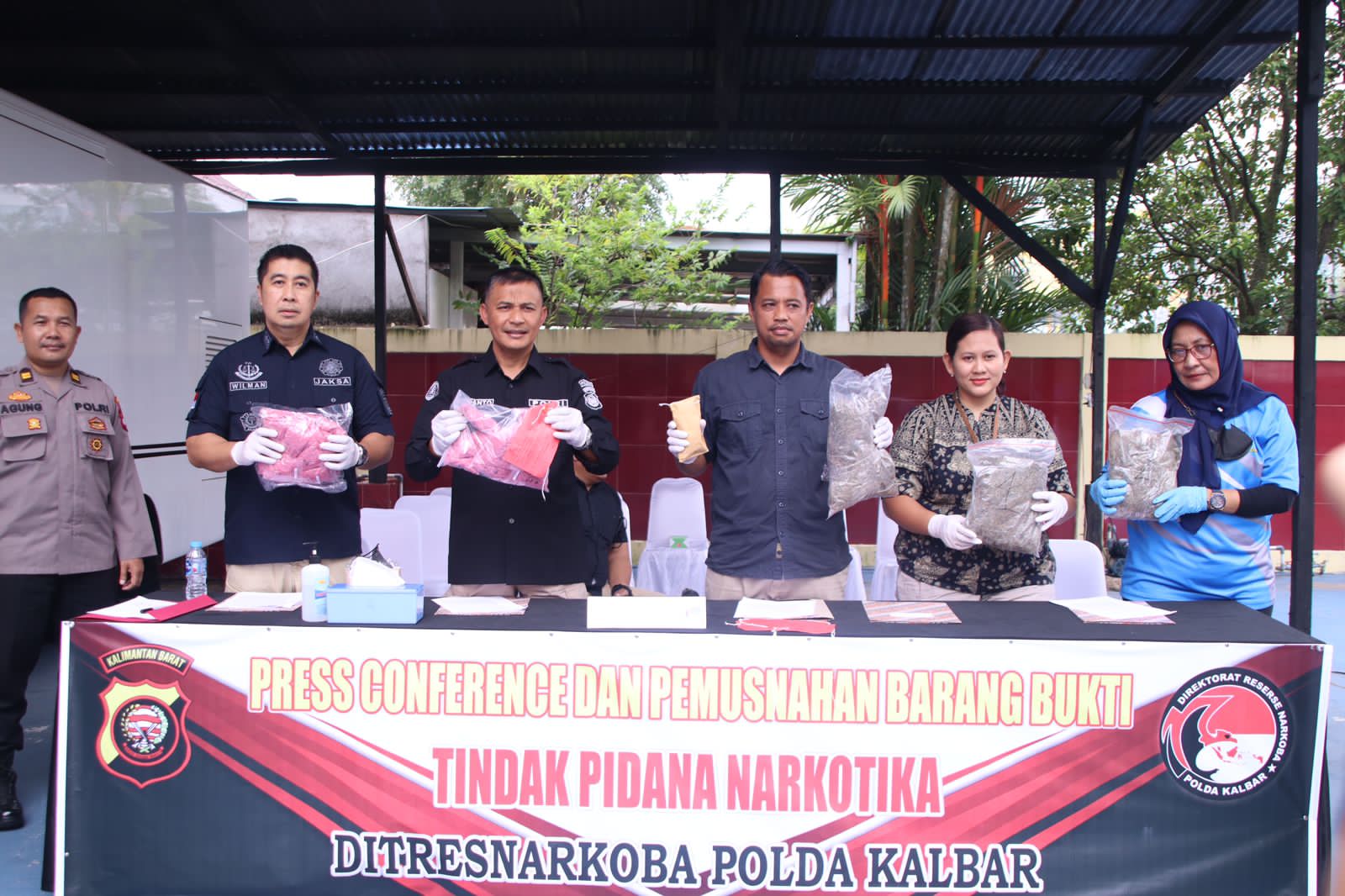 Pontianak,Kalbar,transpos.id – Bertempat di Kantor Direktorat Reserse Narkoba Polda Kalbar yang beralamat di Jl.Zainudin No.1 telah diselenggarakan Press Conference dan Pemusnahan Barang bukti Tindak Pidana Narkotika yang diselenggarakan oleh Direktorat Reserse Narkoba Polda Kalbar, Jum’at (6/10).